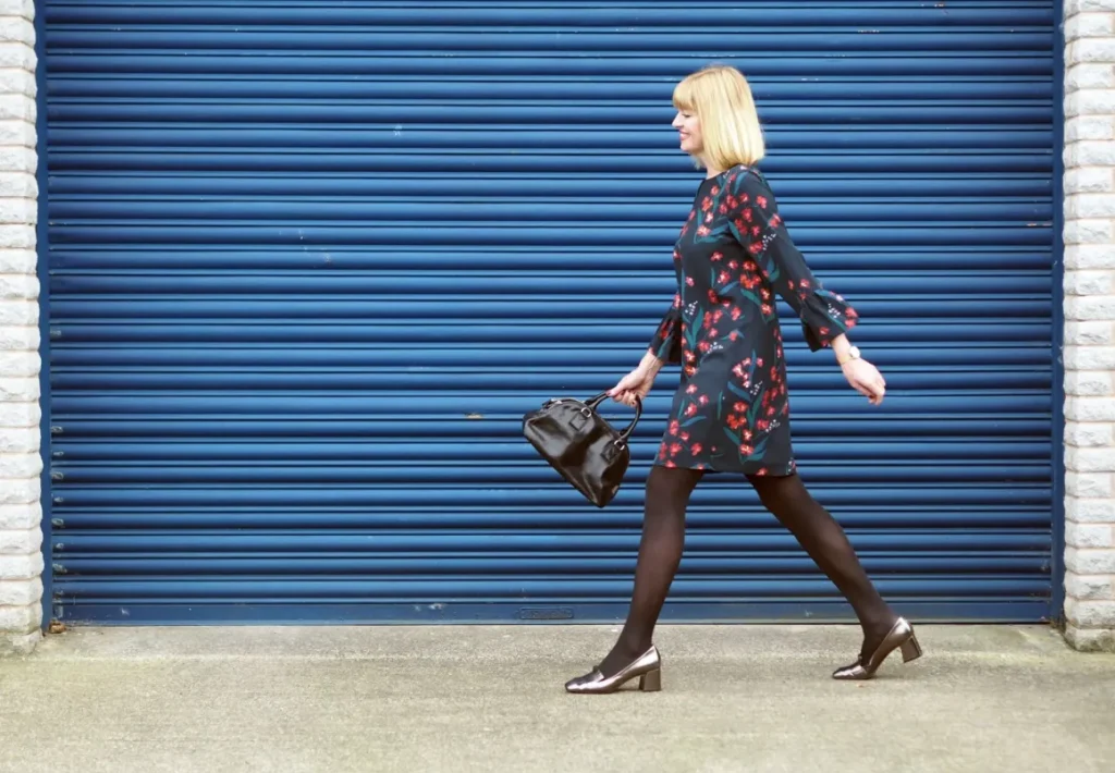 - At the Desk: A knee-length sheath dress in a neutral shade (black, grey, or navy) with a cardigan or cropped jacket looks elegant and office-appropriate.